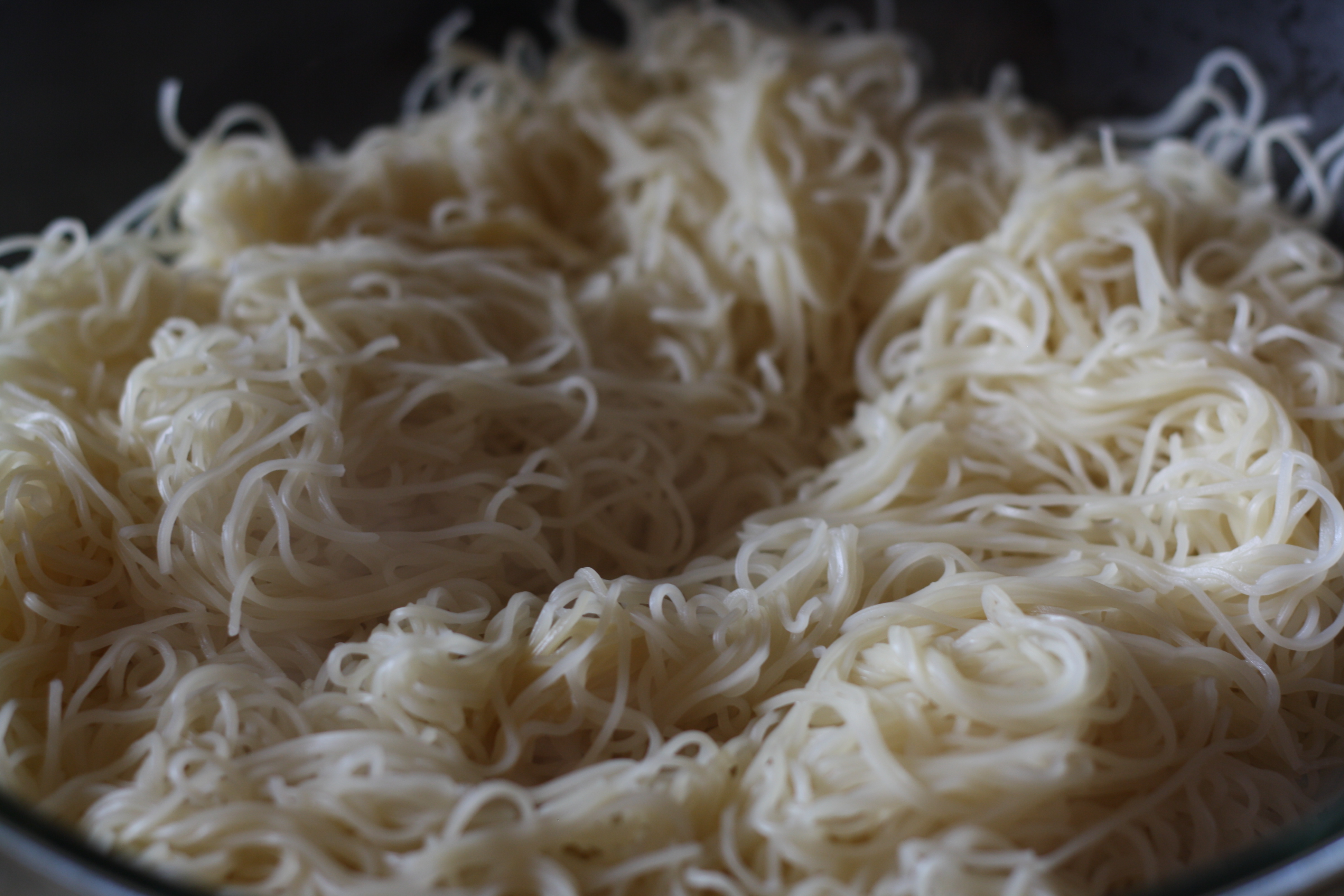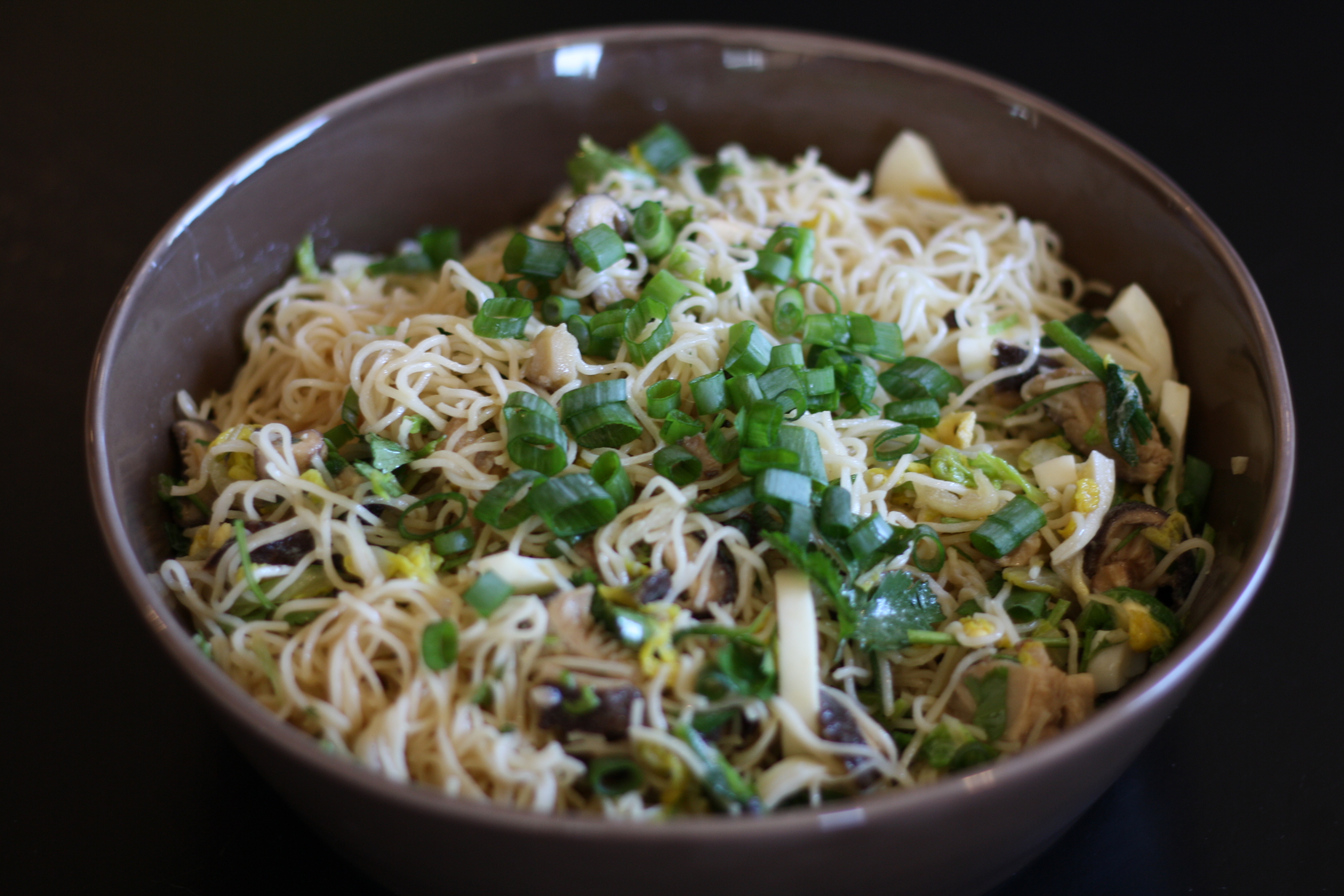 1 1-pound package fresh thin Chinese egg noodles or one 12-oz package of dried Chinese egg noodles (I used dried and thought it turned out well)