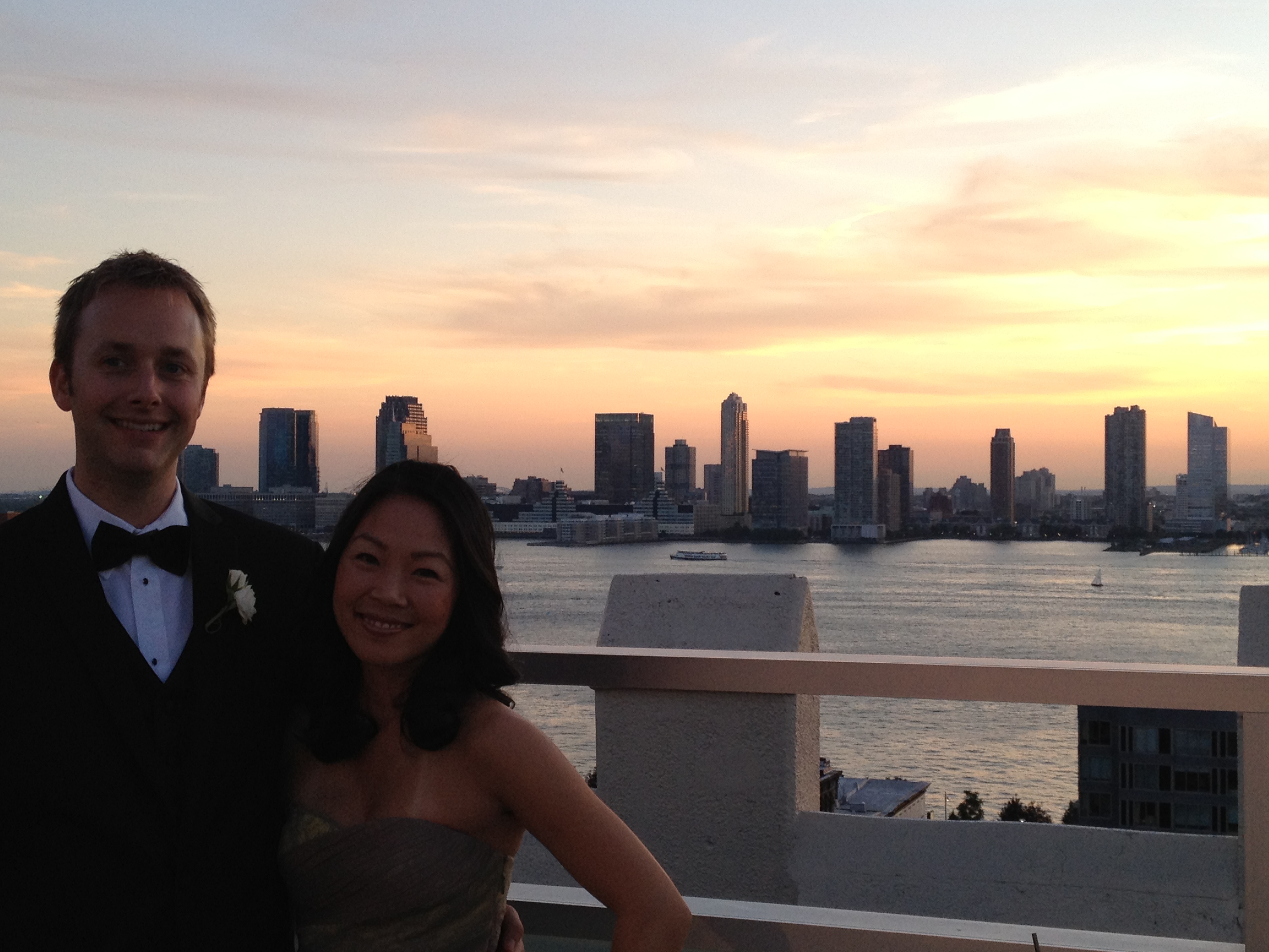 Gorgeous view from the rooftop, overlooking the Hudson river. They had perfect weather for their wedding day and a gorgeous sunset.