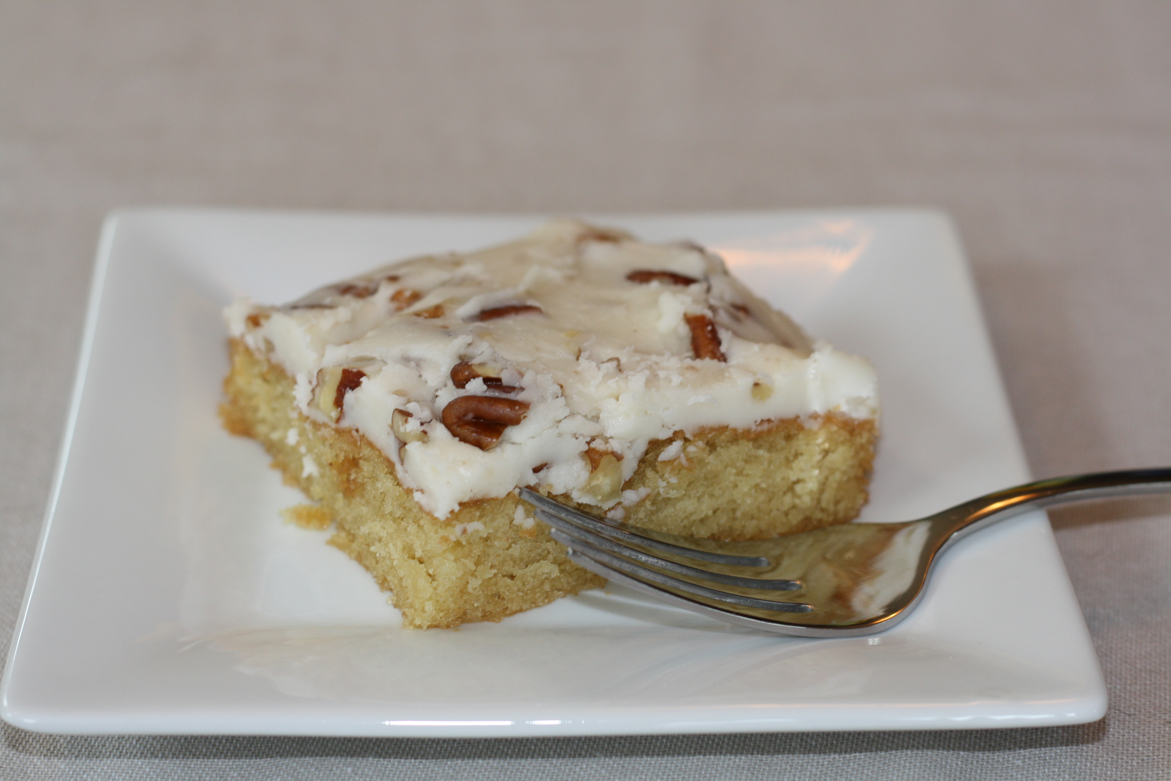 I received many compliments on this cake and some neighbors even asked if I was from Texas. Definitely not from Texas! The cake had a moist consistency with that wonderful essence of almond. The frosting was slightly stiff, so like I said above, I would modify how much of the confectioners’ sugar is added.