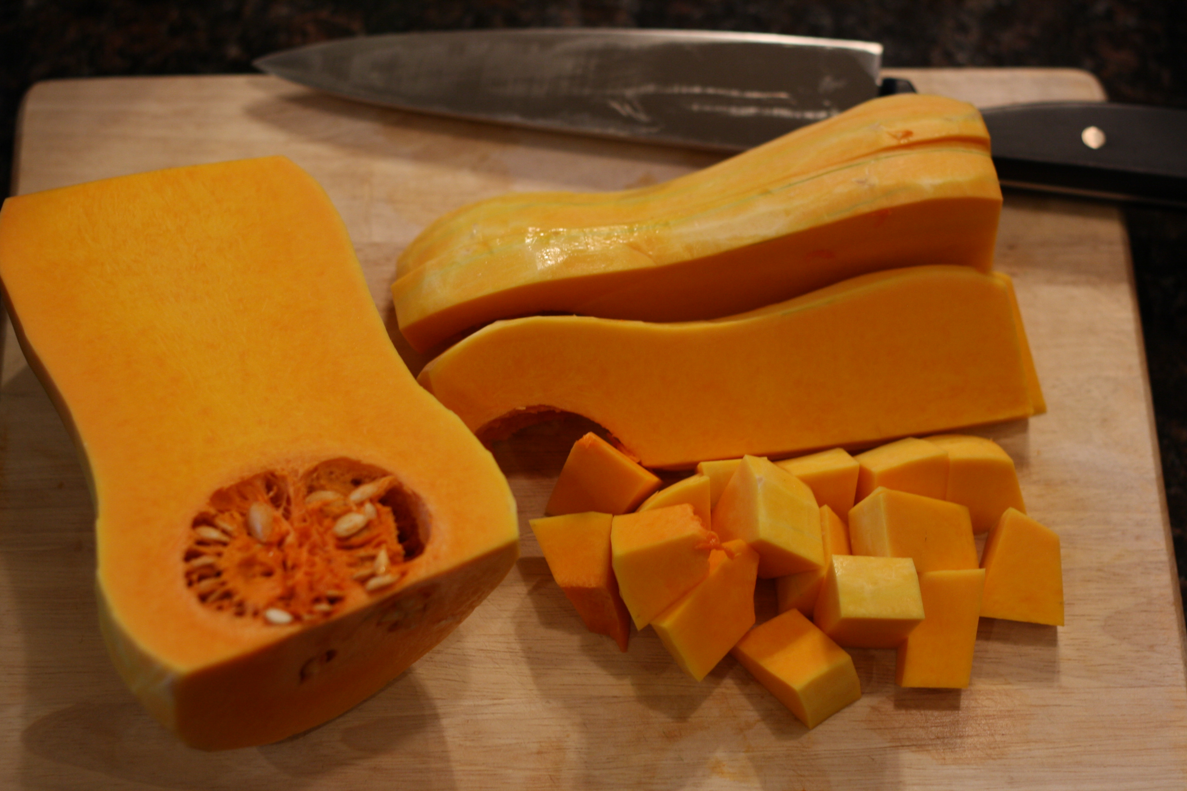 - 1 1/2 pounds butternut squash, peeled, seeded and cut into cubes