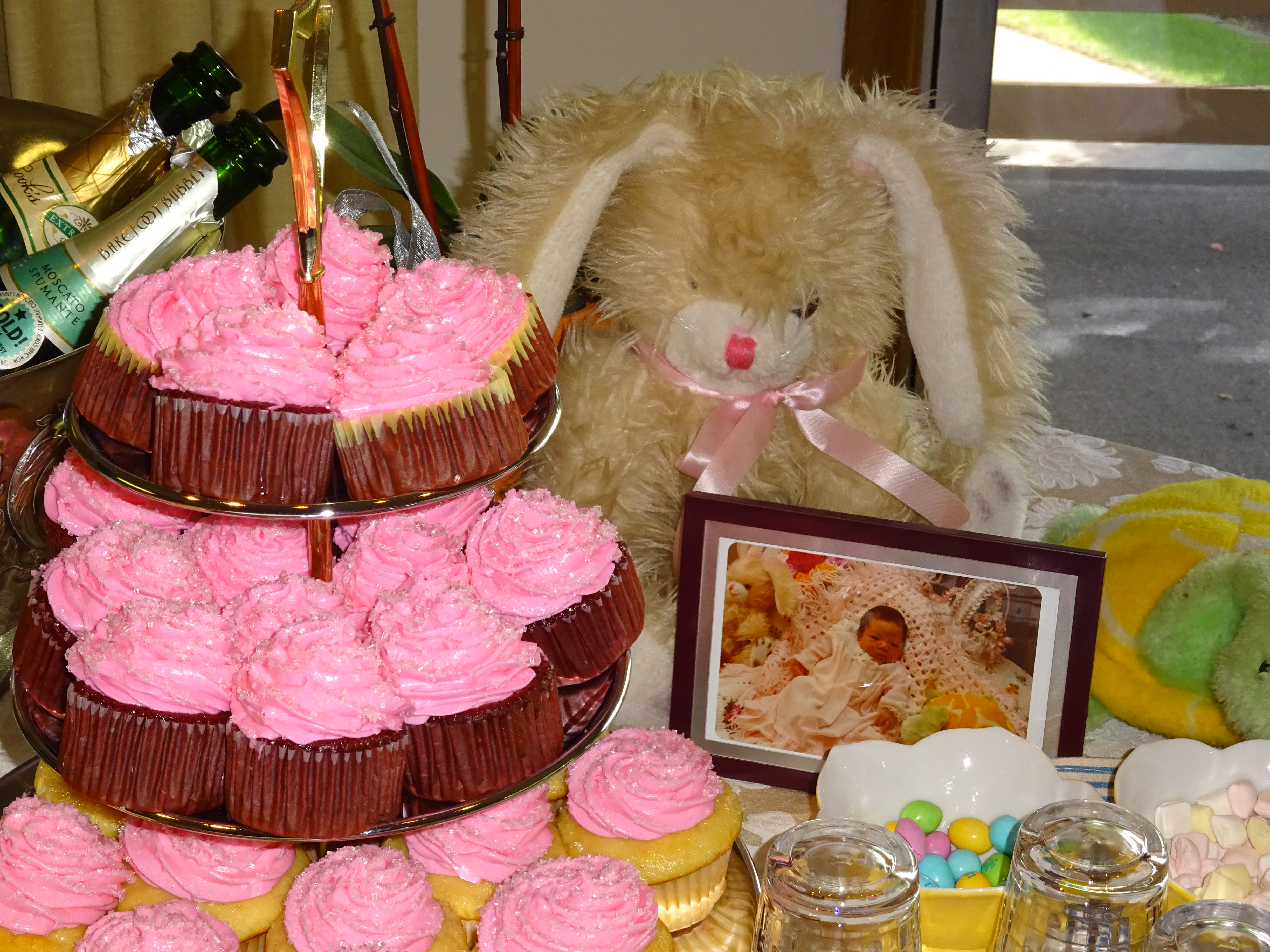 The picture above was from the shower my Mom, best friend and her Mom threw for me in my home town.  My Mom placed this picture of me on the dessert table from when I was a baby and included the same stuffed animals on the table as well.  Oh….and these cupcakes were so yummy, who doesn’t love cream cheese frosting?!