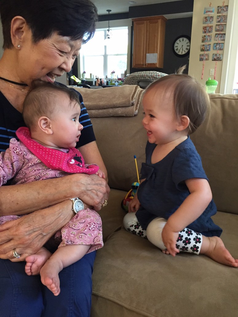 OMG – they get cuter every time I see them, the swing picture is so precious. Glad you had a fun if not so restful labour day vacay with the other twins. Can’t wait to hear about all the mischief the girls will get uop to once they start running around together!