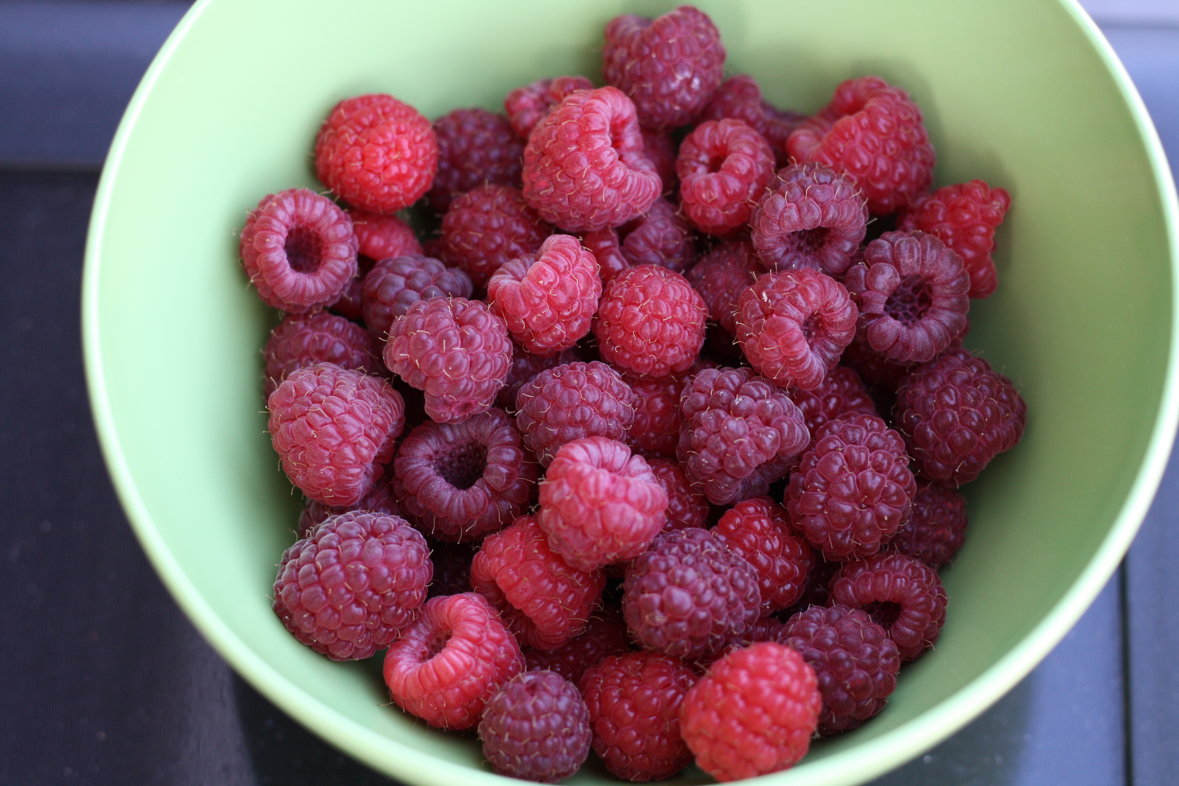 I promised I would be back with a recipe for the coconut milk ice cream I’ve been making incessantly. I talked about some store-bought options for dairy-free, coconut milk ice cream in this post, but making it at home with great, simple ingredients is even better. For my last birthday Hubby gave me a Cuisinart ice cream maker, I had only used it a few times until I discovered how easy it is to make coconut milk ice cream and now I’m hooked. We have a small raspberry bush in our backyard and this is the second year that it’s produced a good number of berries for us. I love all berries, but raspberries may claim the title of “favorite berry”.