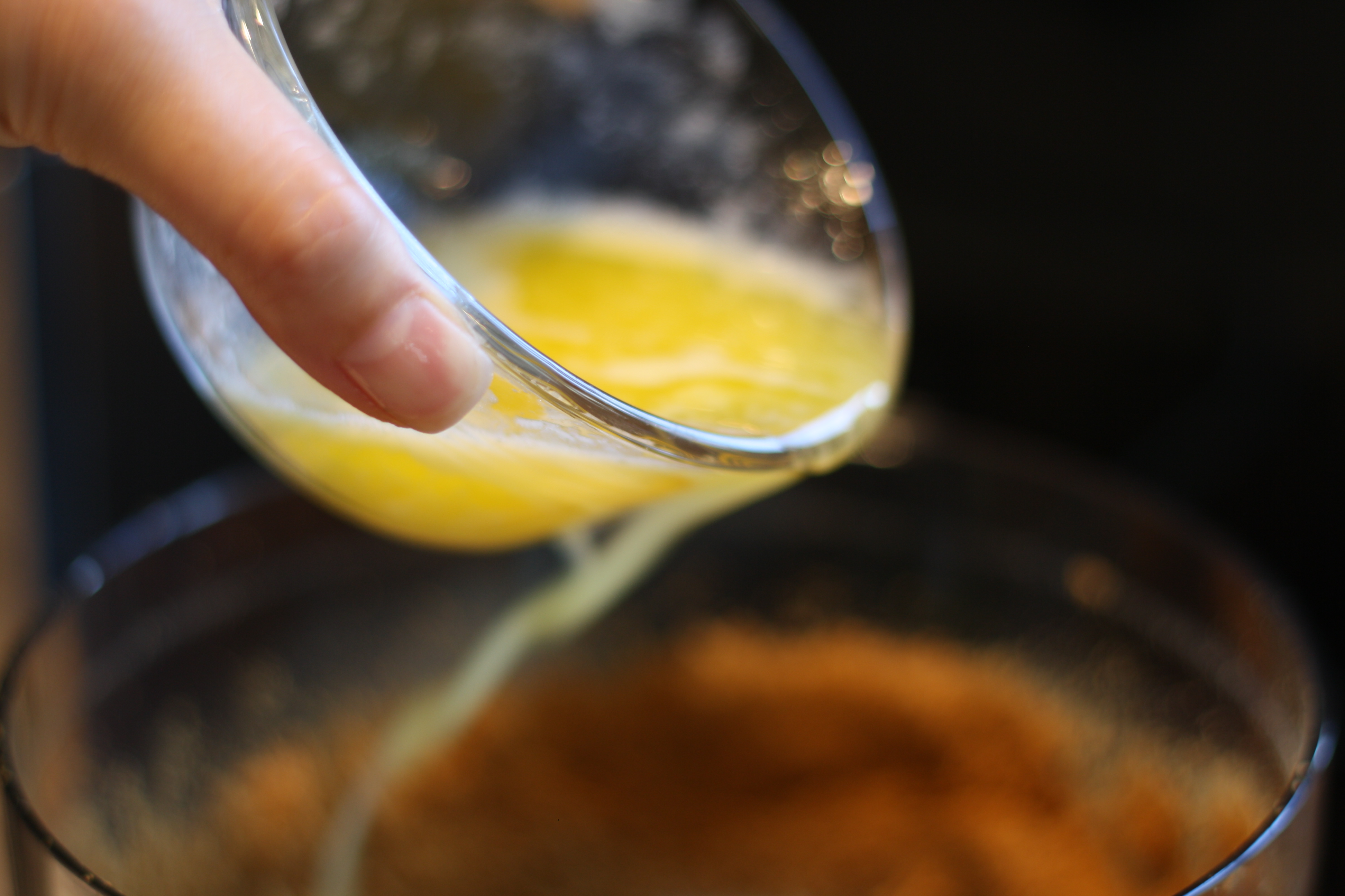 Preheat oven to 325 degrees. Lightly grease a 7-inch square shallow baking pan (I used an 8×8 glass baking dish lined with parchment paper).