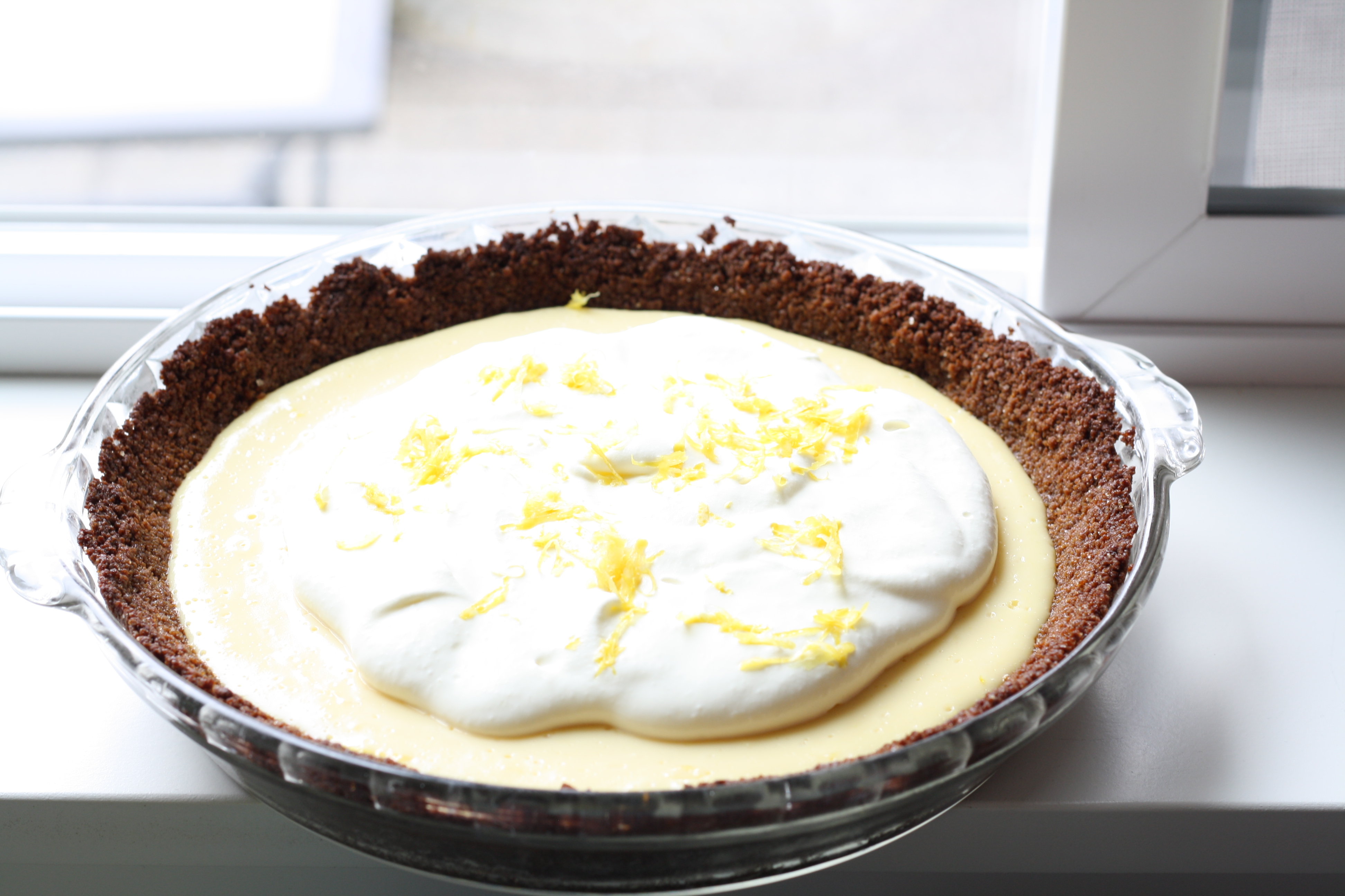 Using an electric mixer, whip the cream and confectioners’ sugar on medium until soft peaks form, 2-3 min. Spread on the pie, sprinkle with additional zest, and serve immediately.